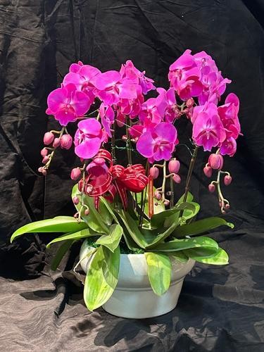 除了菊花,蝴蝶兰也成为市场的“明星产品”。花农王师傅介绍,北方秋季光照柔和,有利于花芽的形成。“蝴蝶兰怕强光,日常放在散射光处,每周浇一次水即可,花期能持续两三个月。”他表示,近年来寿光人更青睐组合盆栽,如将蝴蝶兰与文竹、蕨类搭配,既显雅致又延长观赏期。