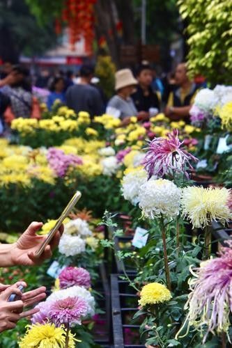 10月14日,建桥大集花香馥郁,人流如织。摊主郑海霞正忙着为顾客介绍新到的菊花品种:“‘金皇后’‘北京红’这些传统菊花开得正盛,荷兰菊颜色更鲜艳,最近特别受欢迎。”她告诉记者,目前菊花已进入盛花期,每盆价格从20元到百元不等,单日销量可达数十盆。