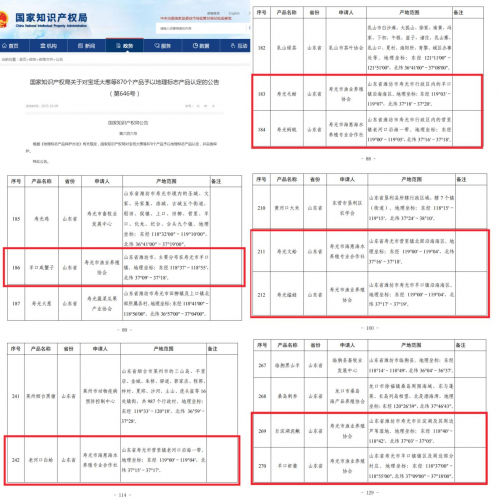 寿光融媒讯 近日,国家知识产权局发布第646号公告,潍坊寿光市13个产品被认定为地理标志保护产品,认定数量位列潍坊各县市区第一位,实现了寿光市地理标志保护产品从“零”到“第一”的新突破。其中“巨淀湖泥鳅”“寿光毛蚶”“羊口咸蟹子”等8个水产品上榜。