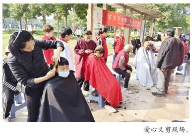 义剪区域同样热闹非凡。专业理发师与老人们一对一沟通,认真倾听他们的发型需求,然后为老人们剪出一个个清爽利落的发型。一位刚剪完头发的老人满意地说:“剪完头发,整个人都感觉年轻了好几岁,心情也变好了,谢谢你们这些热心的理发师!”活动现场还安排了精彩的文艺演出。志愿者们表演的独唱、舞蹈、小品等多种文艺节目,为居民带来了一场视听盛宴。老人们一边欣赏着表演,一边与身边老伙计交流着感受,脸上洋溢着幸福的笑容。