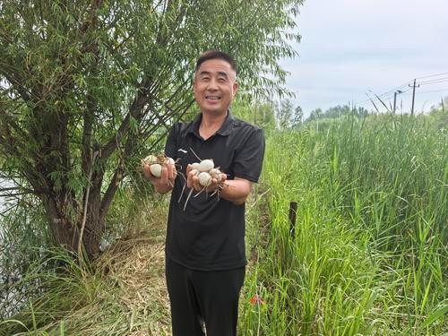 郭秀智边拿起刚捡拾的鸭蛋边向记者介绍:“这个蛋黄,爽滑、有韧性,捏开闻一下,一点儿腥味儿都没有。这几筐鸭蛋都是青州一个老客户提前订好的,根本不愁卖!”郭秀智的养殖基地西靠弥河,水草丰茂,水中的浮游生物、小鱼小虾,都是鸭子的“野生自助餐”。依托园区水系纵横、水面开阔和芦苇、野草等植被丰富的优势,郭秀智压茬展开生态养殖,引进数百只“生态鸭”,包括凤头鸭、连城白鸭、麻鸭、番鸭等,与水中浮游生物、水草、鱼类等形成生态绿色的循环供应链和生长共同体。