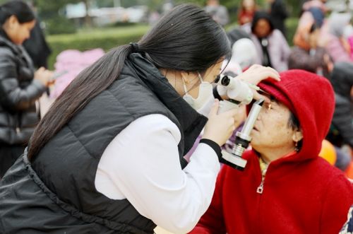 寿光融媒讯(记者 王秀慧 通讯员 梁高敏)近日,在圣城街道金海社区的民生服务大集上,医疗志愿者正在为老人进行视力检查。