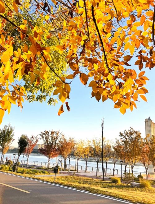 寿光融媒讯(记者 高斌 通讯员 王秋江)立冬时节,潍坊寿光迎来了一年中最富诗意的时节。从居民小区到弥河两侧,从街边行道到城市公园,大自然仿佛打翻了颜料盘,将层层叠叠的色彩铺满视野,把整座城市装点得如画一般。弥河畔的湿地公园,眼下正是最受欢迎的游览地,不少市民趁着晴好天气,在这片景色中与自然亲近,感受属于寿光的季节之美。