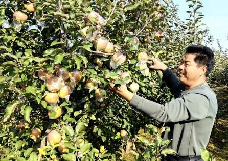 今年以来,寿光市把农产品特色种植作为乡村振兴的重要引擎,从技术指导、品种改良到市场对接、电商赋能,全方位的扶持让果农种得放心、卖得舒心。图为营里镇西中疃村果农忙着采摘苹果,脸上洋溢着丰收的喜悦。