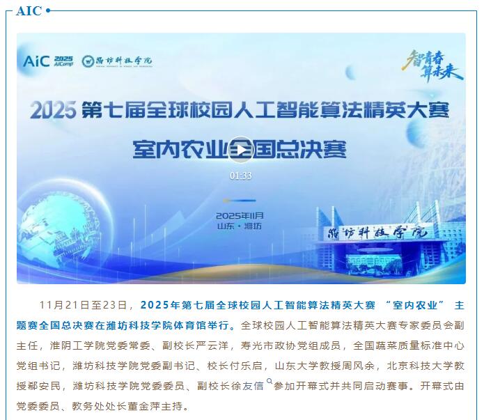 2025年第七届全球校园人工智能算法精英大赛“室内农业”主题赛全国总决赛在潍坊科技学院举行