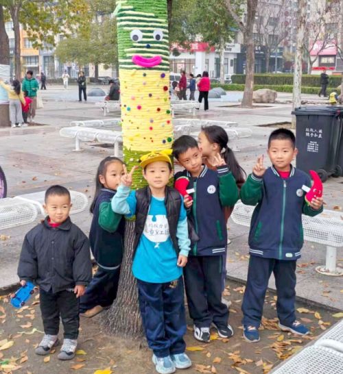“天冷了,为了给大树保暖,也给冬日增添一丝色彩,我们借鉴外地经验做法,带领义工团的孩子们开展了‘给大树穿新衣’活动,给人民广场上的50多棵大树穿上了‘毛衣’。”义工团志愿者王晓宁介绍,“给大树穿新衣”活动项目他们策划已久。由于气候条件所限,冬季的城市景观相对单调,看到外地有给大树穿“新衣”的公益活动,他们就想到在寿光做一次这样的公益活动,美化城市环境的同时也给小志愿者们科普相关知识。