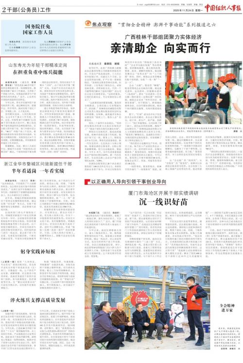 “择优选派140名年轻干部到急难险重任务一线领题攻坚,既服务保障了重点工作推进,又淬炼了干部能力作风,实现基层需求与干部培养的双向奔赴。”近日,山东寿光市委组织部副部长张彬说。