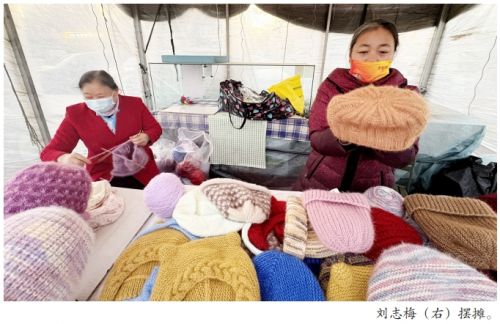 刘志梅的编织摊位开张以来,生意一直不错,许多顾客的需求各不相同,她便跟着调整经营方式,兼顾成品售卖、毛线售卖与定制服务。“有的顾客图省事,会直接买现成的帽子,选好款式付完钱就能带走;有的顾客喜欢自己动手,会买毛线回去试织;还有的顾客有特定需求,看好毛线颜色和款式后,定制专属针织品。”不管是哪种需求,她都会尽力满足。特别是遇到定制款式时,她会耐心询问顾客的尺寸、喜好,根据对方要求调整编织细节,确保成品符合预期。