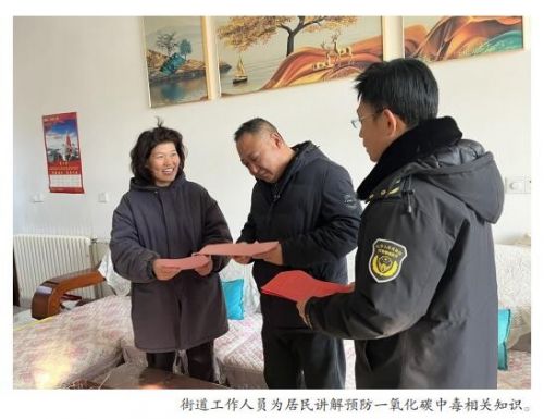 安装报警器是防范一氧化碳中毒的有效手段。西关、杨家、燕家等多个村庄都为村民免费安装了报警器。街道各社区工作人员深入市场、沿街商铺,逐户走访排查,对使用煤炉取暖的商户,为其发放防范一氧化碳中毒明白纸,并督促其安装一氧化碳报警器。
