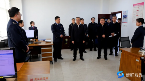随后,李鹏一行来到税务局,深入收入核算股、社会保险费和非税收入股等一线岗位,详细了解税收征管、税费服务等工作情况,向大家致以新年的美好祝愿,对税务部门讲政治、顾大局、敢担当的作风和精湛的业务水平给予高度评价。座谈会上,李鹏指出,税务部门要主动适应新形势新变化,创新方式方法,在税收征管中既要体现严格执法的“硬度”,更要彰显服务企业的“温度”。要充分发挥税收职能作用,积极帮助经营主体防范涉税风险,加强与相关部门联动协作,及时掌握涉税信息,发挥税收共治更大效能。要积极向上沟通对接,进一步优化纳税服务,落实税收优惠政策,提升税务服务效能。寿光市委、市人民政府将全力支持税务部门开展工作,为寿光经济社会高质量发展提供坚实税务保障。