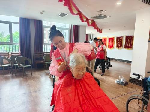 赵珊珊给老人理发