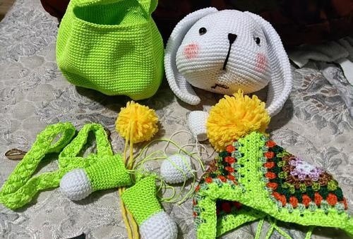 为了精进技艺,钩织出更令人满意的作品,王娟化身勤奋的网络学徒。从基础的针法到复杂的玩偶造型,她都依靠网络教程自学。“因为喜欢,再难也会坚持。”她曾为了学会钩织一个玩偶,彻夜研究教程,反复拆解重来,直至手法娴熟、作品灵动。如今,她主要专注于钩织玩偶包包。这类作品工序繁琐,极需耐心与细致。她不仅不厌其烦,还习惯性地将每一个步骤详细记录,通过照片和视频整理成清晰的流程。这既是对自己创作的存档,也是后来技艺分享的素材。