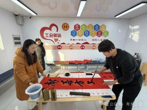 寿光融媒讯 为营造喜庆祥和的节日氛围,1月12日下午,潍坊寿光市总工会在菜博会工会驿站开展了“送对联、送福字、迎新春”活动,将新春的祝福与关怀送到广大职工群众身边。