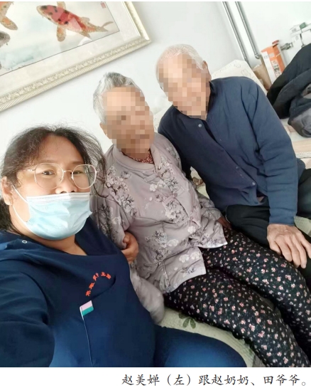 赵美婵是一名“80后”护理员,拥有十多年的医院护士从业经历。2025年,她成为一名居家护理员,开始用专业的护理技能为居家老人送去温暖与关怀。田爷爷的老伴赵奶奶是她接手的服务对象之一,老人因病导致右侧半身不遂,生活无法自理。“我是2025年11月下旬开始照顾赵奶奶的,刚接手时她的身体情况一般。”赵美婵回忆,当时赵奶奶卧床不起,右侧肢体肌肉紧张,右胳膊呈“挎篮子”状,右腿也无法伸直,还伴有语言障碍,无法正常与人交流。由于病情影响,赵奶奶精神状态紧张,时常流露出害怕的情绪,记忆力也明显减退,见到熟悉的人会露出笑容,遇到陌生人则会变得紧张不安。每次护理时,田爷爷都要在一旁帮忙安抚。