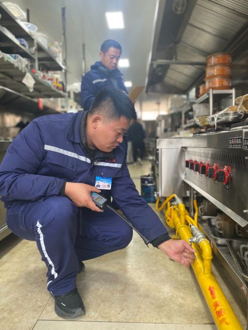 “杨师傅,又来给我们检查燃气啦!”正阳路南段,一家餐馆老板热情地迎接着宝力隆燃气公司的巡检员杨显军。杨显军笑着回应,随即从工具包中拿出专业设备,开始对餐馆的燃气管网进行全面而细致的检查。