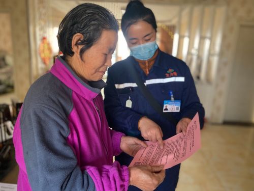工作人员为居民提供安全宣传及管网维护服务