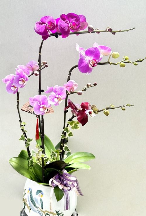 据介绍,春节前两个月是蝴蝶兰的销售旺季,为此,盛芳花卉开启了“线上线下双驱动”的销售模式。“我们还能根据客户需求,提供大小不同、造型各异的花盆,让每一盆蝴蝶兰都显得独具特色。”林春富介绍,目前,基地年成交量高达几十万株,客户遍布全国各地。