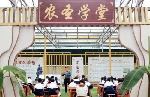 在“蔬香里”研学馆,古籍农具实物展示、推犁翻土等体验项目,让传统农耕智慧可感可触;水质检测、细胞观察、立体栽培系统组装、蔬菜新品种培育等实践环节,将“从一粒种子到一盘好菜”全链条转化为沉浸式劳动教育课堂。基地专设试验田,更是把粮食安全与科技自强理念融入教学,实现学科教育与爱国教育的有机结合。