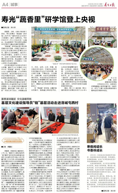 寿光融媒讯(记者 黄馨仪)新春将至,福韵渐浓。2月6日,“基层文化建设指导员‘链’基层”活动走进潍坊寿光市洛城街道屯田西村,在仓颉汉字艺术馆,大家以笔墨为媒、以文化为桥,将马年新春的美好祝愿与传统文化的深厚底蕴送到群众身边,让墨香伴着年味浸润基层,让文化关怀温暖百姓心田。
