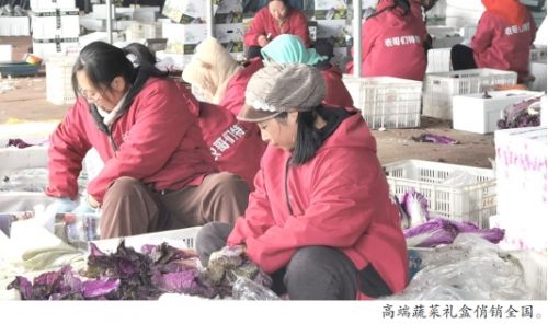 在套菜加工车间,紫亮的螺丝椒、嫩绿的板蓝根青菜、小巧的帝王胡萝卜、造型别致的宝塔菜整齐排列,近百种特色蔬菜琳琅满目,工人们熟练地进行分拣、称重、装箱,流水线作业有条不紊。“前阵子每天装300箱左右,一过腊月十五,日供应量达到了800至1000箱,工人从早六点到晚八九点都忙不过来,还得从外面临时招工。”套菜加工点负责人李金丽介绍,新推出的高端蔬菜礼盒主打特色化、个性化,不仅有搭配好的固定套餐,还支持消费者从近百种特色蔬菜中自主组合,满足客户的不同需求。