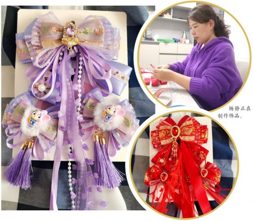 起初,杨静只是为女儿制作一些简单的小头饰,没想到这些满载爱意的作品竟在朋友圈里引起了不小的轰动。“太精致了,能不能帮我们也做几个?”“你做的这些饰品卖不卖?”……面对朋友们的热情请求,杨静决定将这份家庭小爱转化为更多人的欢喜。她利用抖音等平台汲取新知,不断提升自己的制作技艺,尽管过程中遇到了不少“坑”,比如购买的材料不实用、网上图片与实物色差较大等,但她从未言弃。