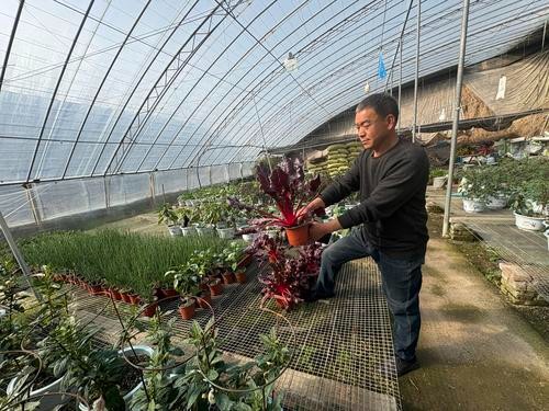 日前,记者来到稻田镇太平寺村赵友圣的蔬菜大棚时,一排排整齐的盆栽蔬菜长势喜人,圆茄、长茄、绿茄错落有致,小香葱、红甜菜、绿甜菜鲜嫩欲滴,人参果、特色辣椒、优质生菜等品种琳琅满目,50多个品类的盆栽蔬菜构成了一幅生机盎然的田园画卷。棚内,赵友圣正俯身查看蔬菜长势,动作娴熟而专注。