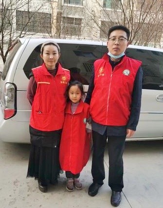 甄乐云(左一)和丈夫孩子一起参加志愿服务活动