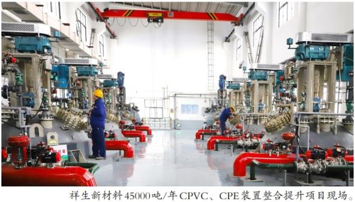 不远处,祥生新材料总投资1亿元的45000吨/年CPVC、CPE装置整合提升项目已进入试生产,预计3月20日满负荷运行。该项目可实现全流程智能化管控,达产后年产4万吨CPVC,年营收预计6.45亿元。