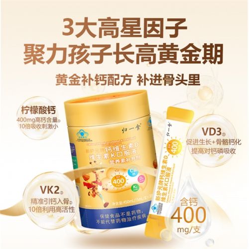 归一食液体钙摒弃市面上单一钙源的粗放配方,并非简单的成分堆砌,而是结合儿童生长发育生理特点、孕哺期女性营养需求,经过反复科学配比,精研出4.0微米柠檬酸钙+400mg高含量有机钙+专利维生素D3 10.5μg/支+专利维生素K2(MK-7) 22μg/支的黄金营养组合方案。