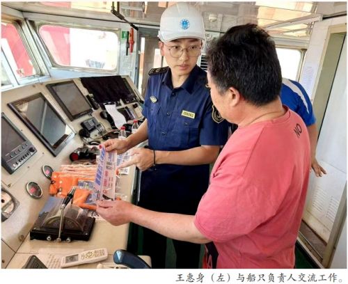 执法中,王惠身始终坚持严格执法与热情服务并行,面对船员的不理解,他换位思考、耐心引导,带着船员到缺陷现场指明问题、手把手指导整改,将执法现场变为普法课堂。他严格落实“首违不罚”政策,以柔性执法让执法兼具刚性与温度,传递着“处罚不是目的,安全才是根本”的理念。
