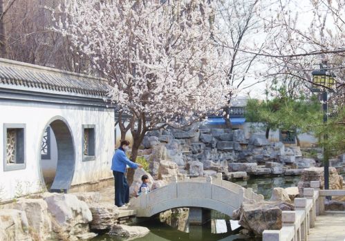 市民在公园踏青赏花
