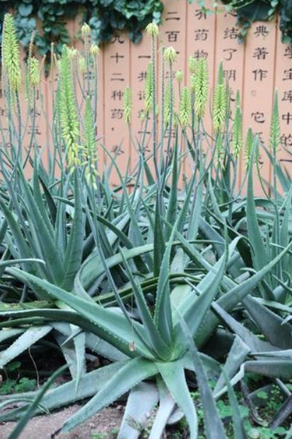 熊猫景观的前方是一片举着一把把“白色小伞”的蒲公英,它们的叶片翠绿,舒展有力,边缘带着锯齿。有的已经擎起嫩黄的小花,明媚鲜亮;有的则结出了蓬松雪白的绒球,成熟的种子在风里轻轻颤动,仿佛随时准备奔赴远方。旁边的芦荟叶片厚实饱满,窜出的花剑上已经排满了淡黄色的花苞,还有薄荷、紫苏、金银花等常见又实用的药蔬,每一株都长得精神抖擞。工作人员介绍,这里的药蔬不仅能入药、食用,还有很高的观赏价值,诠释了“药蔬同源”的精髓。