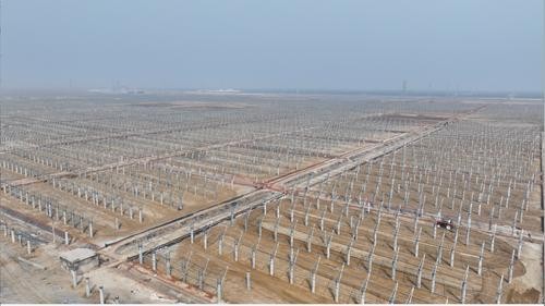 一个重大项目可以激活一个产业,为羊口经济注入活力。猎猎海风中,总投资24.5亿元的国电投鲁北盐碱滩涂地风光储输一体化基地W5地块,6700多亩的场地上一片片固定支架桩基正绵延铺展。该项目的落地生根,展现了羊口镇加快培育综合新能源这一百亿级优势产业集群的坚定步伐。面向未来,羊口镇将以绿色能源赋能产业升级为主线,打通“资源-能源-产业”价值转化闭环,抢占绿色低碳发展先机,培育新能源产业新增长极,推动新能源产业实现跨越式发展。