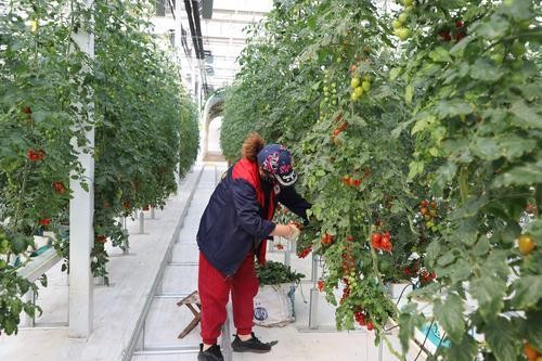 走进纪台镇纪都现代农业共富产业园,高标准温室大棚内绿意盎然,各类果蔬长势喜人。管理员常志红熟练地修剪、整枝、吊蔓,动作行云流水。“我在这里工作一年多了,每天忙8小时左右,主要负责蔬菜日常管护,活儿不重、离家又近,每月能拿到稳定收入,比外出打工省心多了。”她说,在家门口上班,工作之余能随时照顾家庭,真正实现了家庭事业两不误。园区里,像她这样的村民还有不少,大家“骑车上下班、按月领工资”,日子安稳又有奔头。