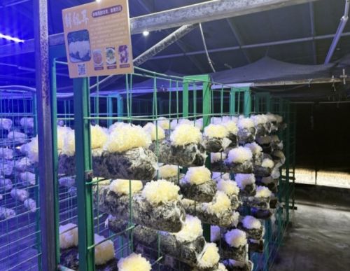 走进大棚,9个珍稀食用菌品种整齐排布,猴头菇、灵芝、金耳、银耳等各具特色,错落生长在标准化菌架上,个个形态饱满、色泽鲜亮,尽显优质菌菇的独特魅力。与传统菌棚不同,这里没有杂乱的人工操作痕迹,全自动喷雾系统精准调控湿度,湿帘与全自动通风系统协同运作,恒温系统将棚内温度稳定在菌菇生长的最佳区间,全方位实现了多品种食用菌的全年工厂化生产。
