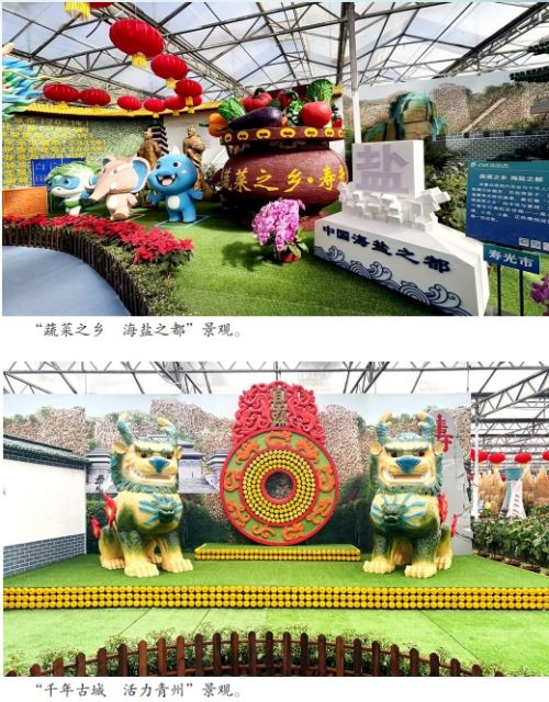 作为蔬文商旅一体的复合展馆,潍坊印象馆深度萃取各县市区地域特色文化景观,创新运用蔬菜文化艺术进行创意呈现,打造了独具特色的文化展陈空间。同时,展馆聚焦“一县一景一品”协同效应,同步展销各地“潍坊好品”,将文化观赏与消费场景无缝衔接,让游客既能沉浸式领略潍坊地域文化魅力,又能随心选购特色好物,实现观赏体验与购物乐享两不误。